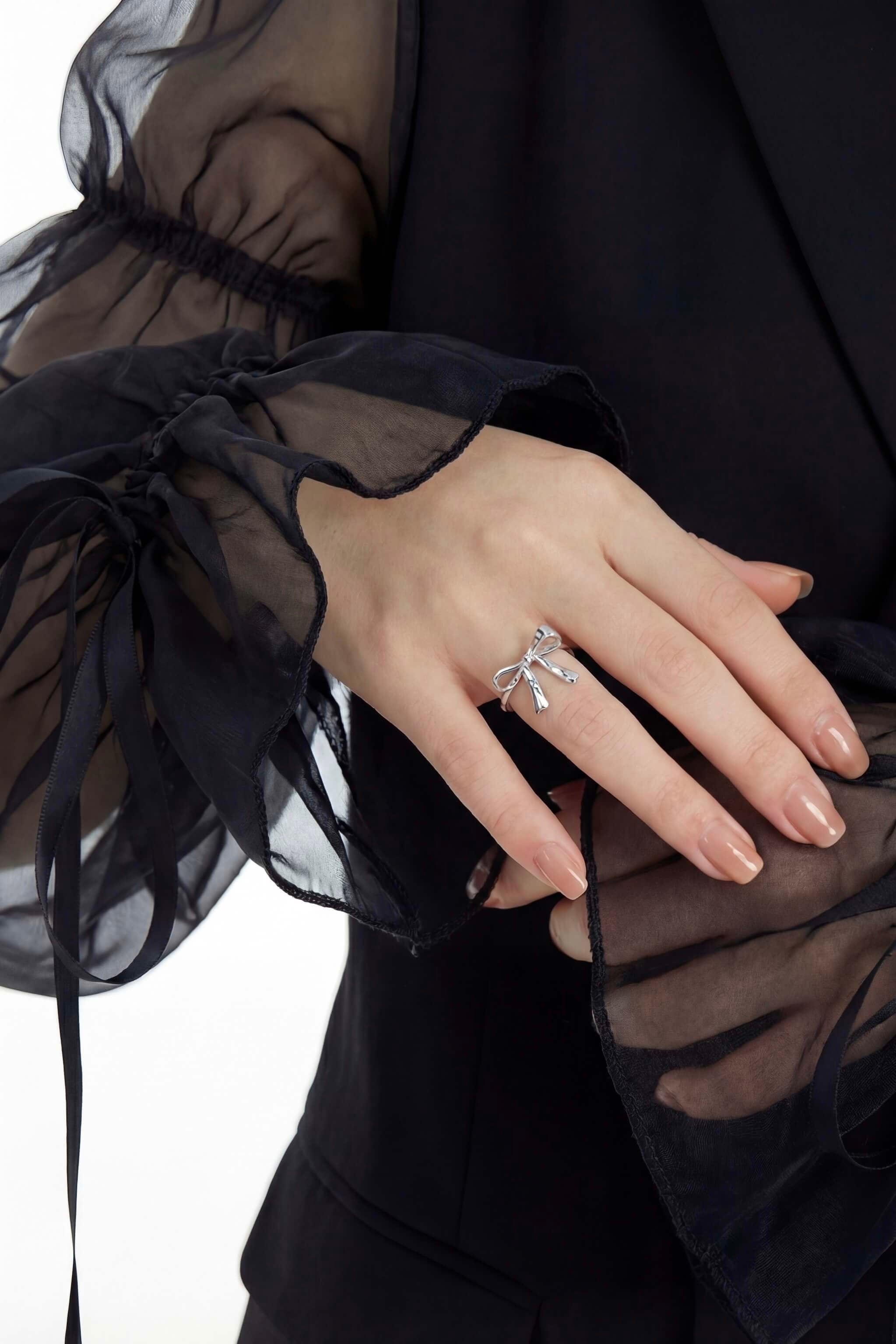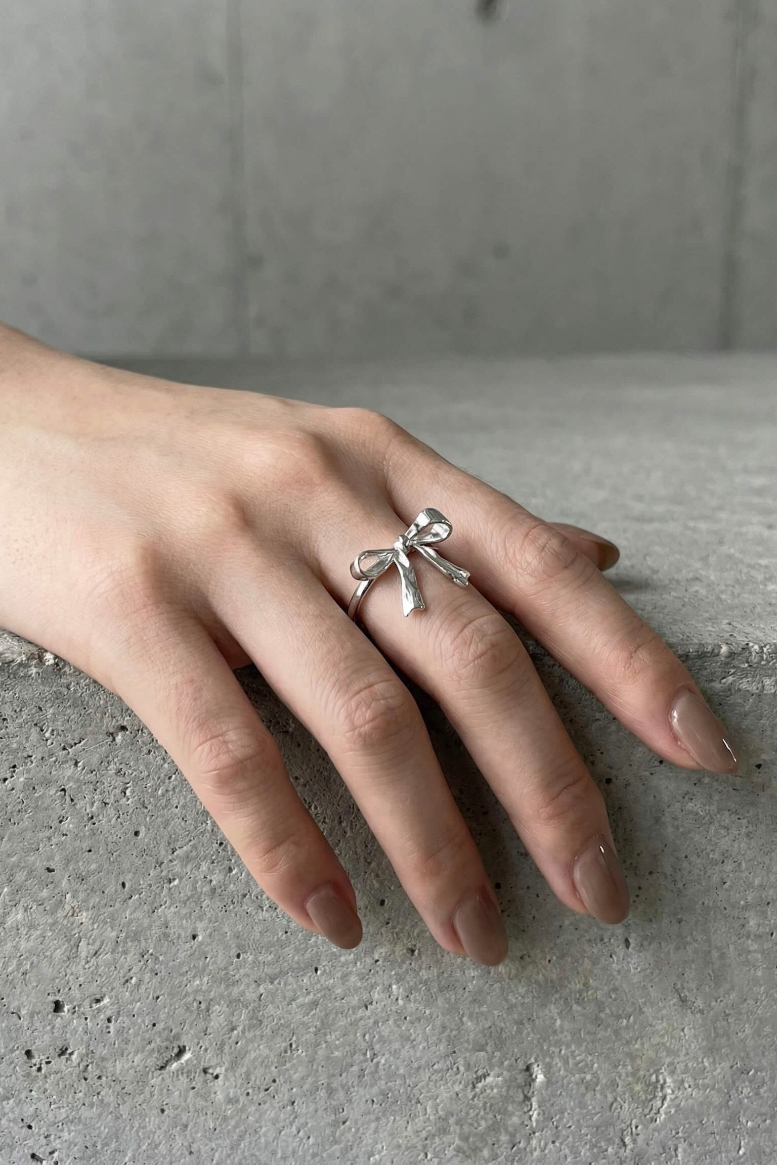 シルバーリング素材:Silver925 シルバーリング直径:16.4mm(約11号) シルバーリングサイズ:オープンサイズ/調節可 結んだ時の質感をリアルに再現したリボンがとても可愛いリングです! 手指をすっきり見せてくれる絶妙なバランスで、トレンドのバレエコアのようにカジュアルとエレガントを掛け合わせたコーディネートのアクセントに是非◎