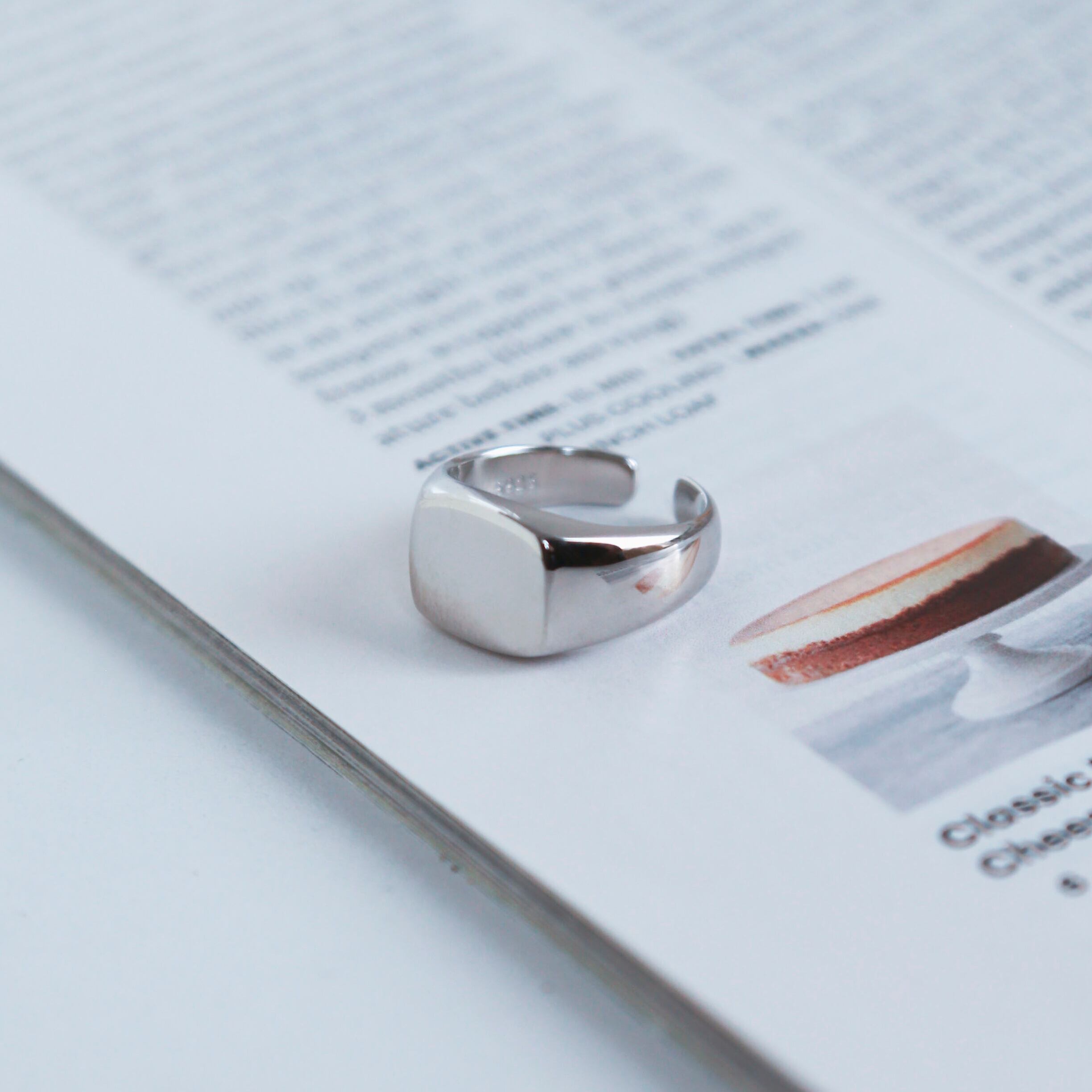 シルバーリング素材:Silver925 シルバーリング径:16.9mm(約13号) シルバーリングトップ幅:10.8mm シルバーリングサイズ:オープンサイズ/調節可能(約10〜21号に調節可能) 正面が平らになっており自然な丸みを帯びたフォルムがとても可愛いリングです! こちらは開店時からのロングセラー商品で、しっかりとした作りで一つつけるだけで手元のお洒落が完成し、初めてのシルバーリングとしてもおすすめです◎