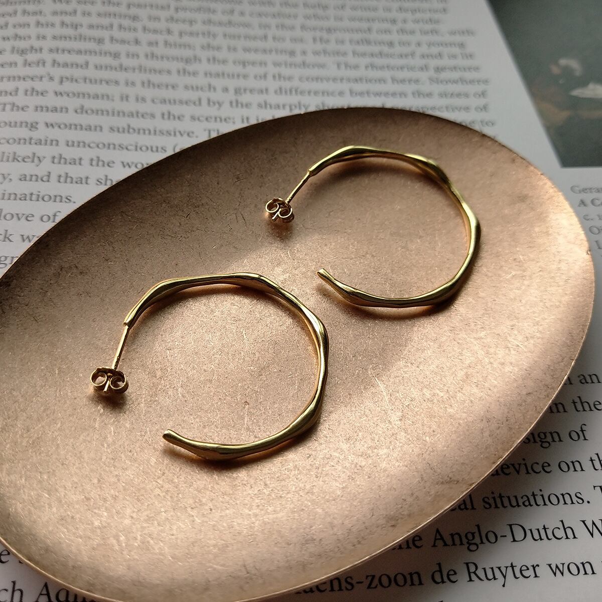 ピアス素材:Silver925(Silve925素材に18Kメッキが施されています) カラー:ゴールド 少し大きめのゴールドのフープが顔周りをすっきり明るく見せてくれるピアスです! 艶やかでさりげなく動きのあるデザインが大人カジュアルな雰囲気にもぴったりで、普段のコーディネートに取り入れていただけます◎
