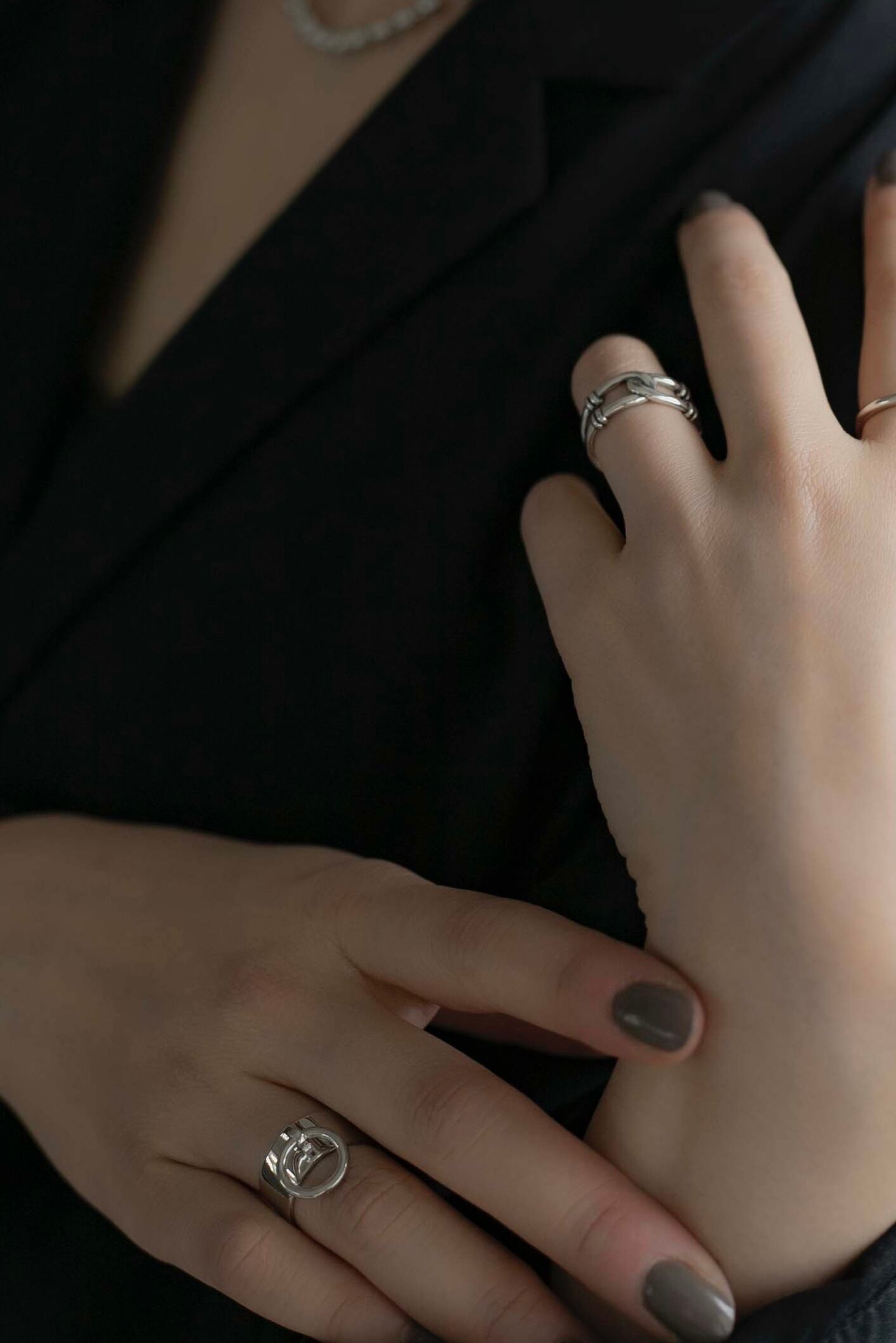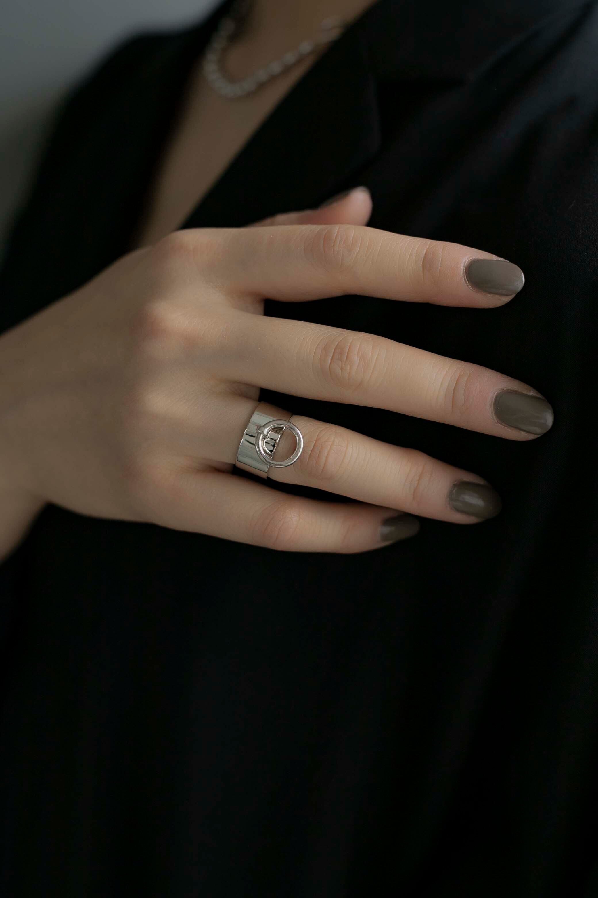 シルバーリング素材:Silver925 シルバーリング径:16.1mm(約11号) シルバーリングサイズ:オープンサイズ/調節可能 揺れるフープがとても可愛く、クールになり過ぎない絶妙なデザインがおすすめのリングです! しっかりとした作りで単体ではもちろん他のリングと合わせてもお使いいただけ、個人的にもとても気に入っているリングの一つになります◎