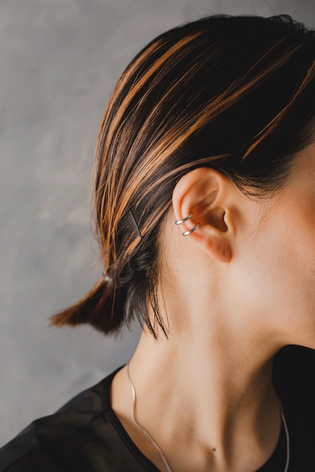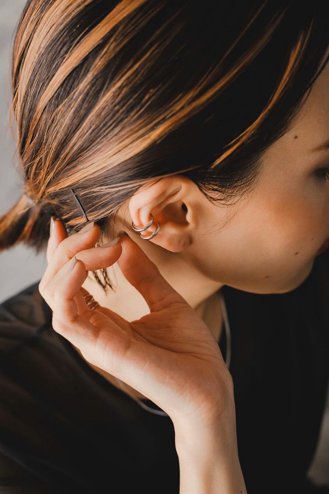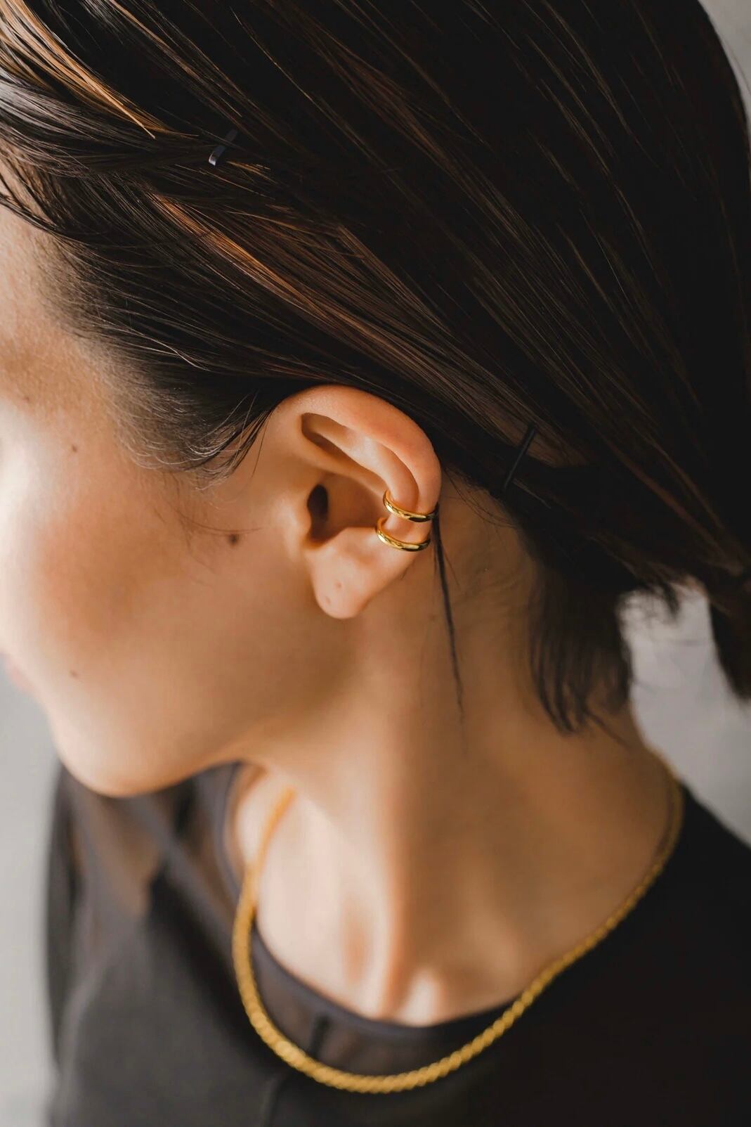 シルバーイヤーカフ素材:Silver925(ゴールドはSilver925素材に18金メッキとなります) シルバーイヤーカフ内径:9.9mm シルバーイヤーカフ幅:10mm ぷっくりとしたシンプルなダブルラインがとても可愛いイヤーカフです! しっかりと抜け感があるので他のイヤーカフやピアスとも合わせやすく、どんなファッションにも取り入れていただけます◎