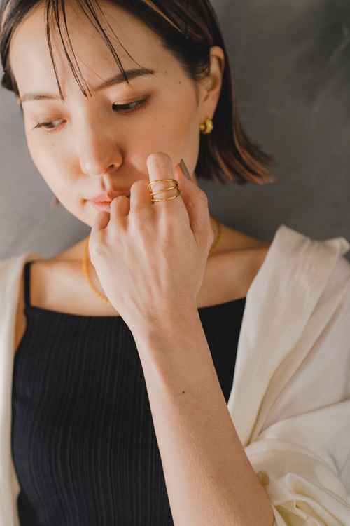 シルバーリング素材:Silver925(ゴールドはSilver925素材に18Kメッキとなります) シルバーリング直径:16.5mm(約12号) シルバーリングサイズ:オープンサイズ/調節可能 立体的なレイヤーデザインが手元に抜け感を与えてくれるリングになります! しっかりとした作りで指になじむ絶妙なボリューム感がとても可愛く、一つあるとコーディネートの幅が広がります◎