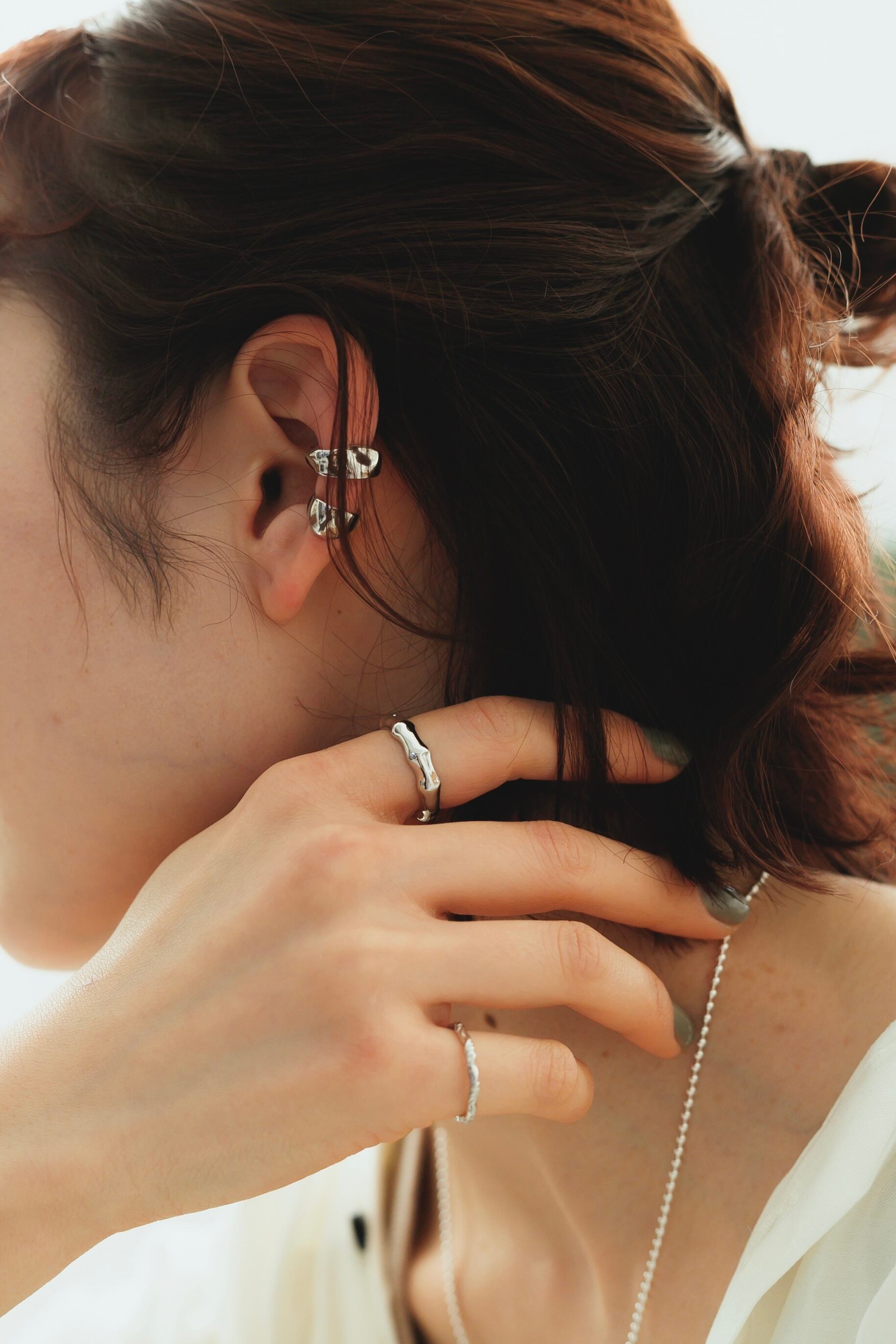 シルバーリング素材:Silver925(ゴールドはSilver925素材に18Kメッキが施されています) シルバーリング径:16.5mm(約12号) シルバーリングサイズ:オープンサイズ/調節可能 節くれ立ったフォルムで艶やかな質感の掛け合わせがとても可愛いリングです! しっかりとした作りでシルバーの重みを感じていただけ、手元のアクセントにぴったりです◎