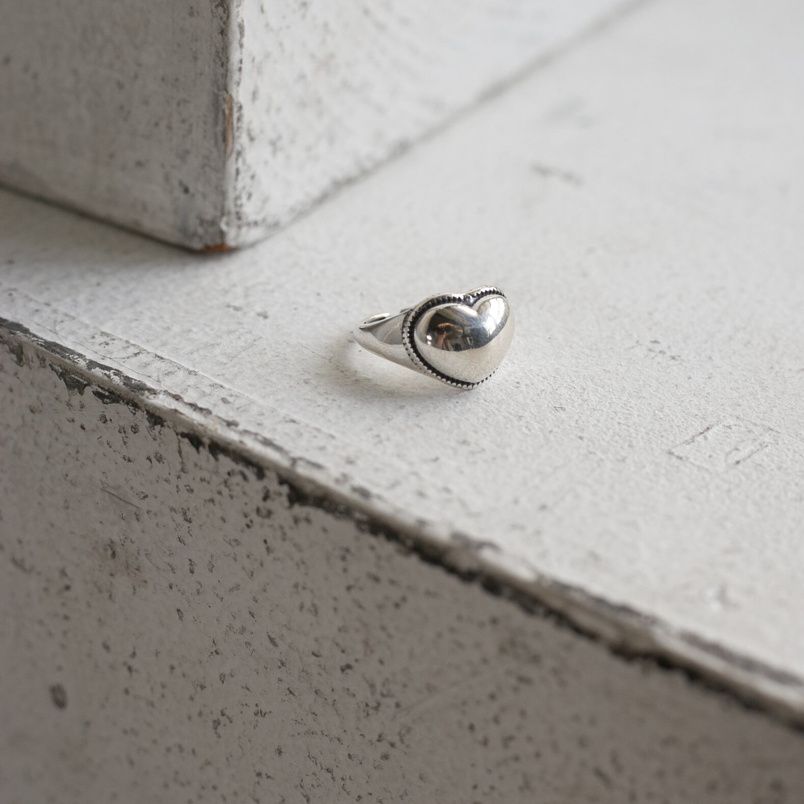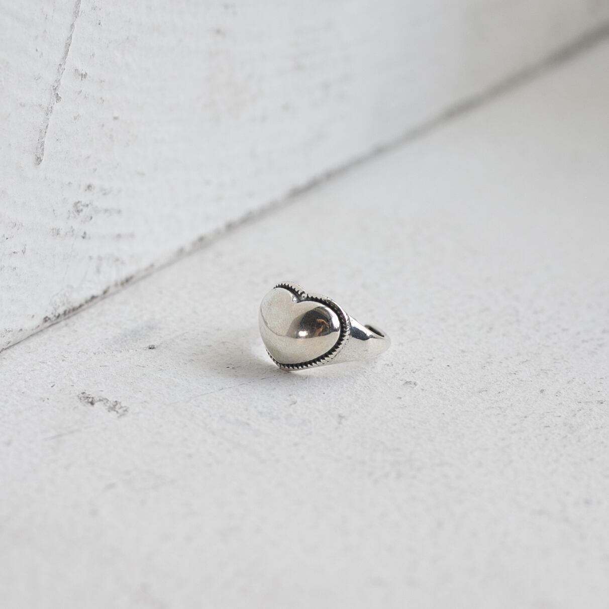 シルバーリング素材:Silver925 シルバーリング径:16.4mm(約11号) シルバーリングサイズ:オープンサイズ/調節可能 シルバーリング表面加工:ヴィンテージ 存在感のあるぷっくりとしたハートがとても可愛く、ヴィンテージ調のため甘くなり過ぎずにお使いいただけるリングです! 一つつけるだけで印象的な手元になり、普段のコーディネートに大人かわいく取り入れていただけます◎ ※ヴィンテージ加工により表面がヴィンテージ品の様な風合いに仕上がっております。