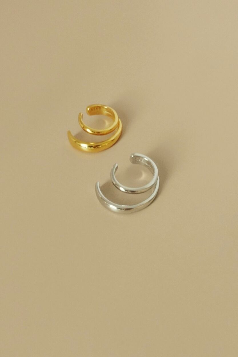 シルバーイヤーカフ素材:Silver925(ゴールドはSilver925素材に18Kメッキとなります) すっきりとしたダブルデザインがとても使いやすいイヤーカフです! 軽い着け心地で他のアクセサリーとも合わせやすく、普段のコーディネートにプラスしていただけます◎
