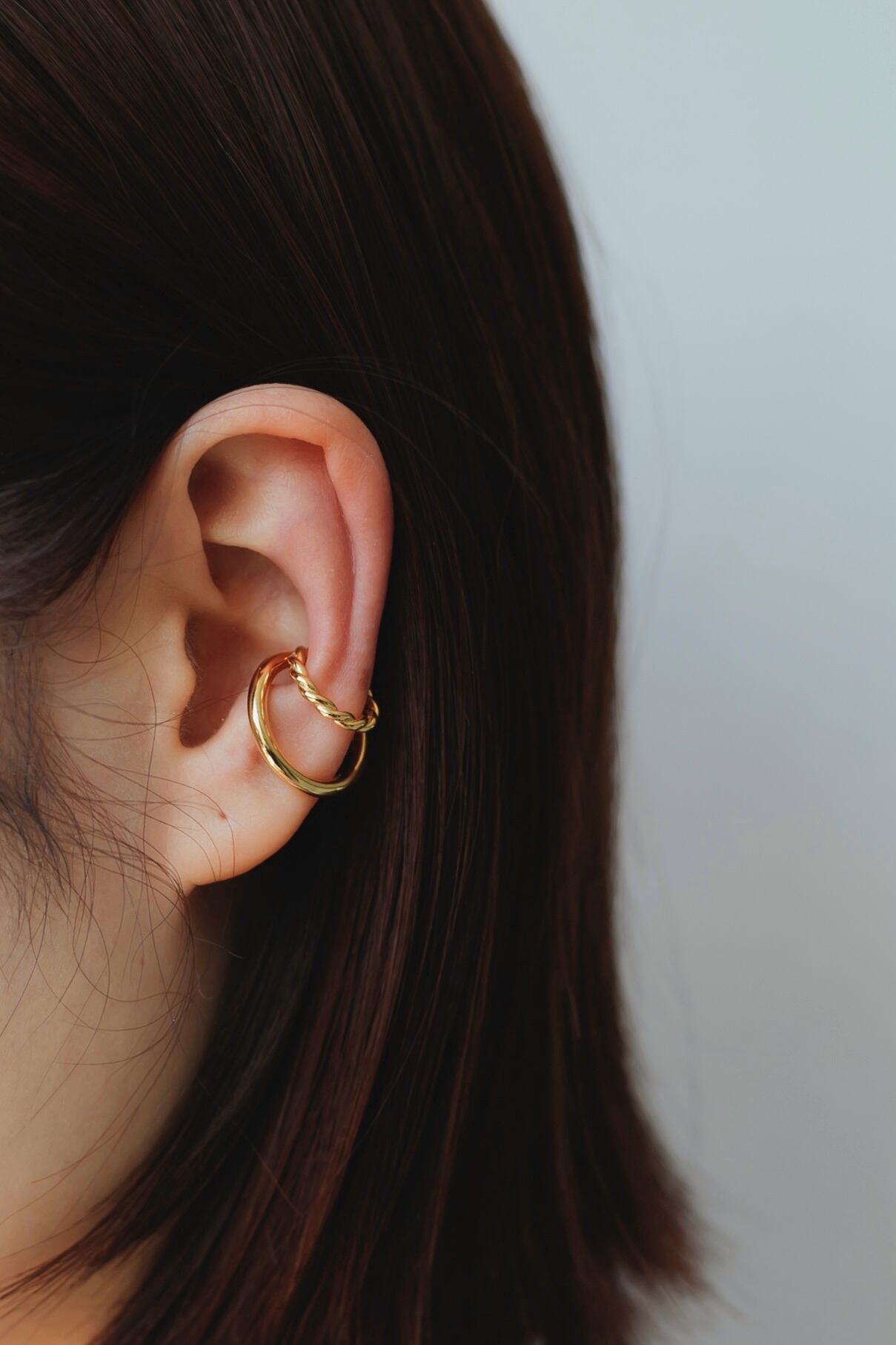 シルバーイヤーカフ素材:Silver925(ゴールドは18Kメッキが施されています) 質感の異なるダブルデザインがとても可愛いイヤーカフです! 目を惹くサイズ感ですっきりとしたフォルムが使いやすく、大人カジュアルなコーディネートのアクセントにぴったりです◎