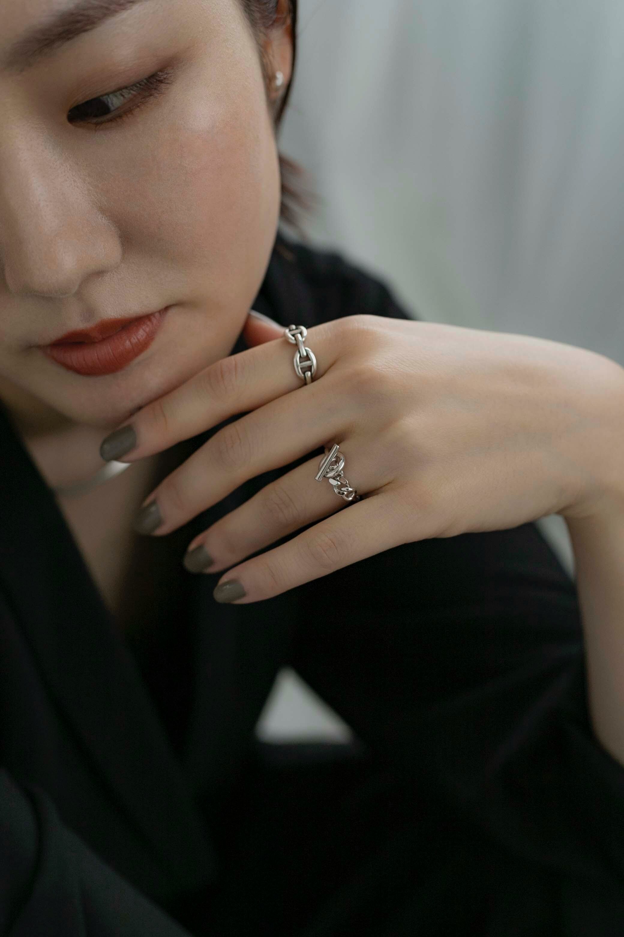 シルバーリング素材:Silver925 シルバーリング直径:16.5mm(約13号) シルバーリングサイズ:オープンサイズ/調節可能 マリンチェーンを模したデザインにヴィンテージ加工がとてもお洒落なリングになります! しっかりとした作りで高見えし、一つつけるだけで手元に存在感が出ます◎