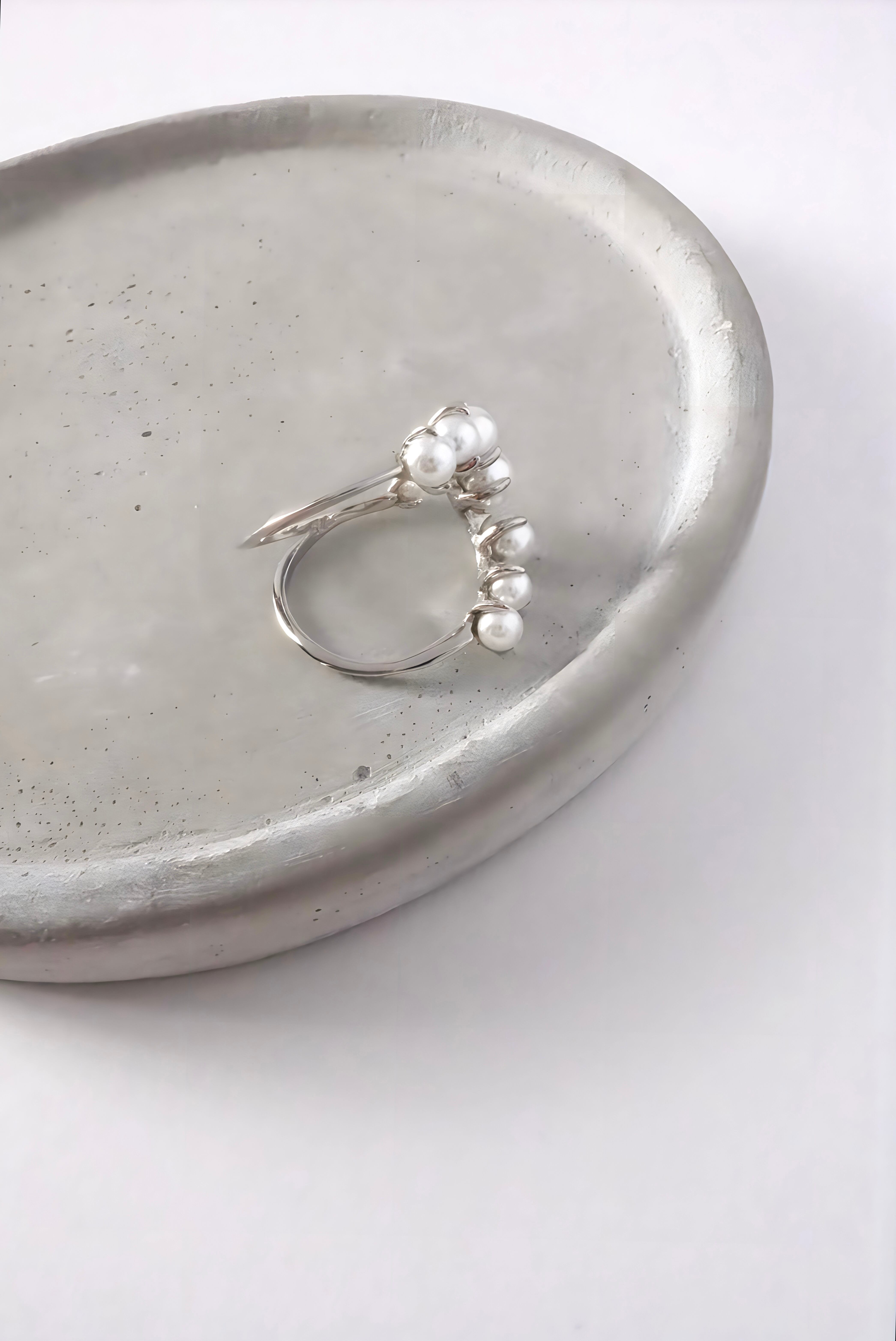 シルバー素材:Silver925 パール素材:貝パール シルバーリング直径:16.7mm(約12号) シルバーリングサイズ:オープンサイズ/調節可能 パールの華やかさと抜け感たっぷりのダブルデザインがとてもお洒落なリングです! パールの大きさがさりげなくグラデーションになっているので印象が強くなりすぎず、エレガントにもカジュアルにも合わせていただけ、親指につけても可愛いです◎