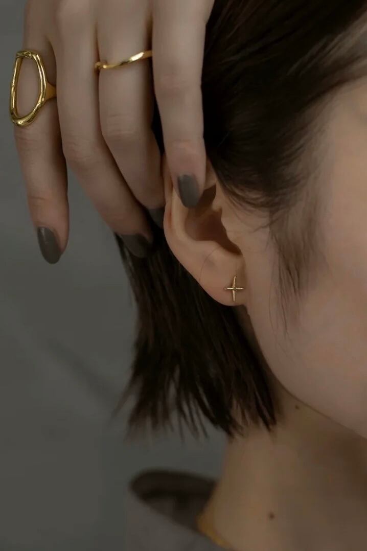 ピアス素材:Silver925(ゴールドはSilver925の上に18Kメッキが施されています) ピアスサイズ:8mm×6mm ピアスポスト:11mm ミニマルなクロスモチーフがとても可愛いピアスです! シンプルで華奢ながら存在感があり、他のピアスやイヤーカフと合わせてもお洒落で、コーディネートのワンポイントとしてカジュアルにもフォーマルにもお使いいただけます◎