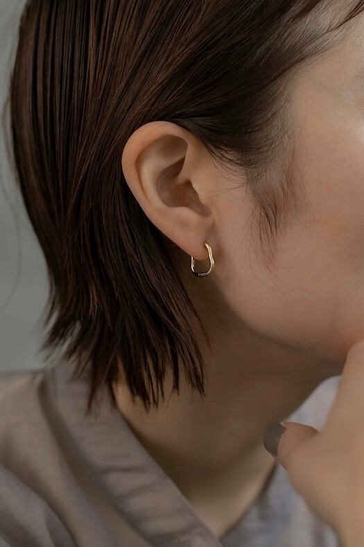 ピアス素材:Silver925(Silver925の上に18Kメッキが施されています) 人気のペア型で、くびれのあるすっきりとしたフォルムがとても可愛らしいピアスになります! ピアスバックが不要でお顔周りに馴染む絶妙なサイズ感が普段のコーディネートに取り入れやすく、デイリーユースとして沢山活躍してくれると思います◎