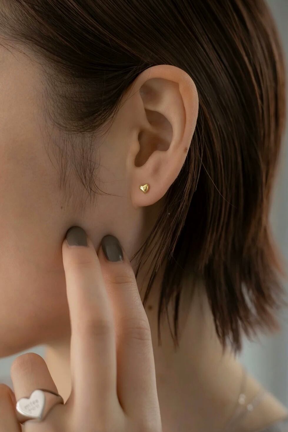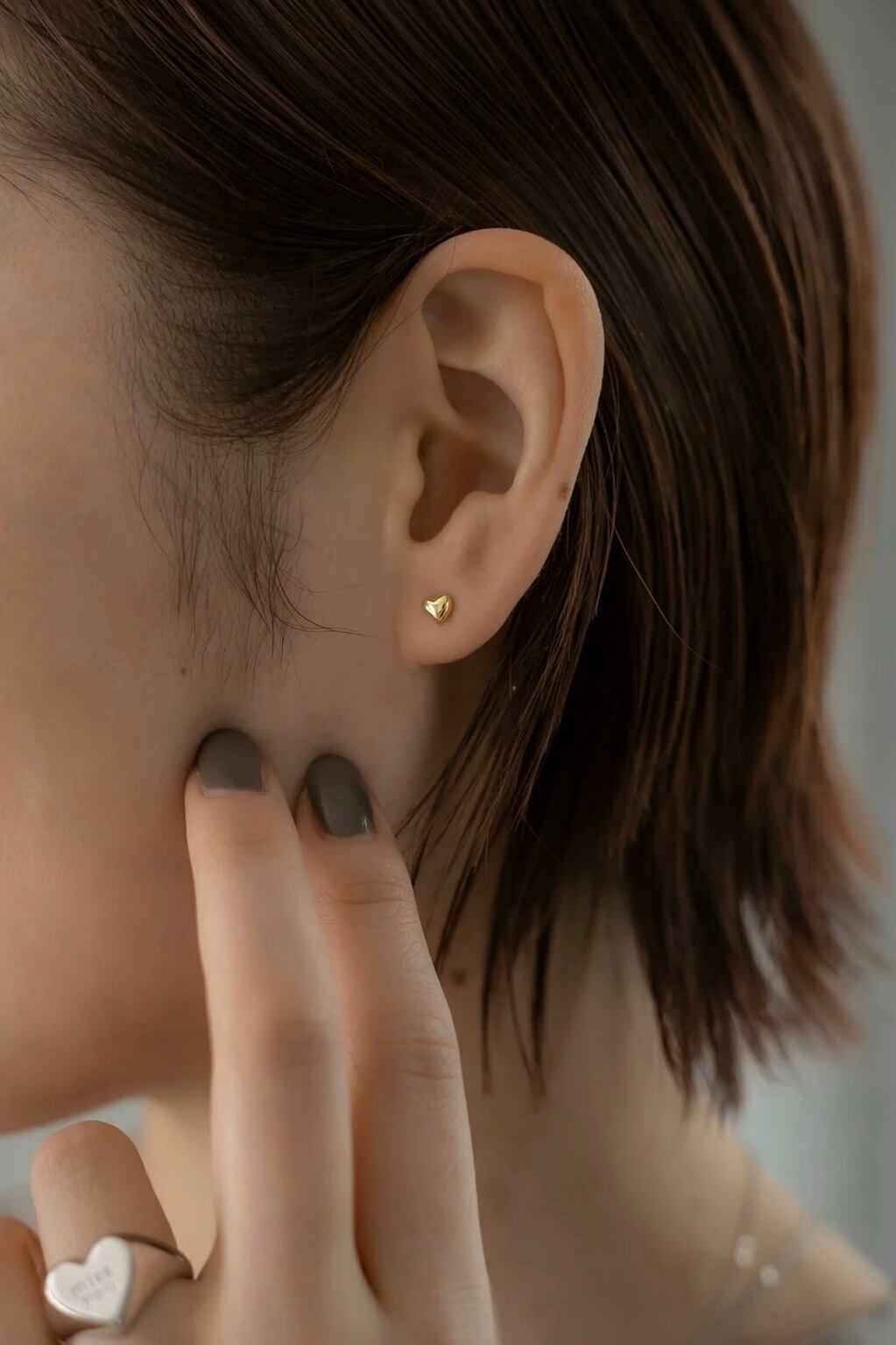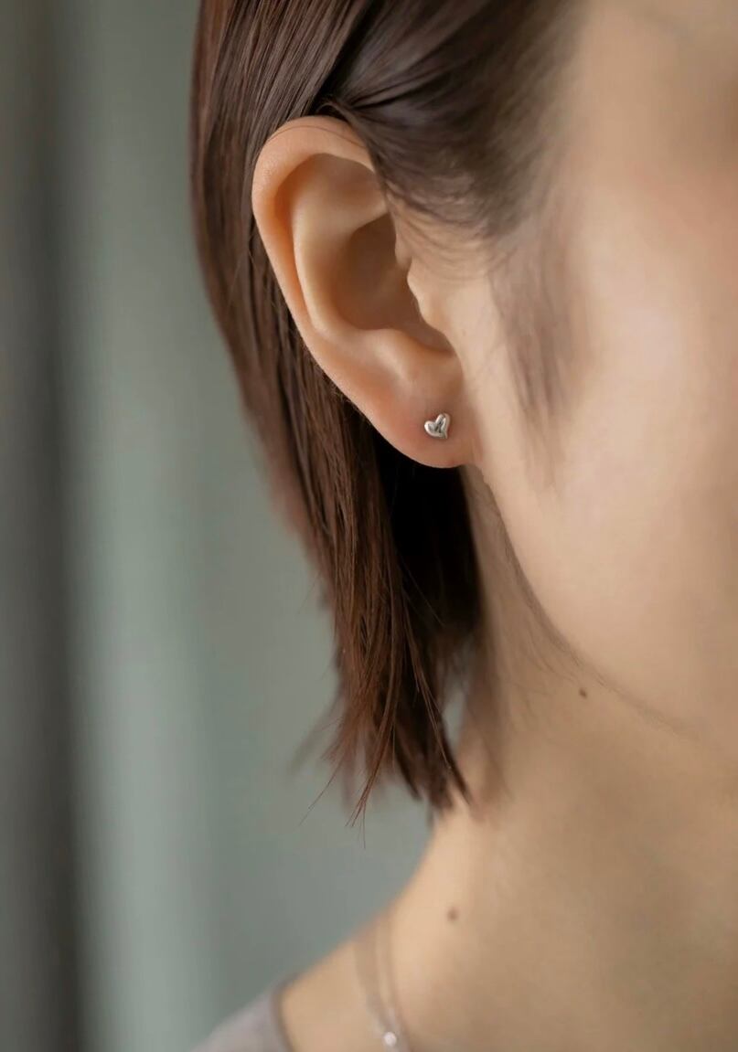 シルバーピアス素材:Silver925(ゴールドはSilver925素材に18Kメッキが施されています) 艶やかでぷっくりとしたハートモチーフがとても可愛らしいピアスです!! ミニマルなサイズ感が単体ではもちろん他のピアスやイヤーカフと合わせてもお洒落で、お顔周りをさりげなく明るく見せてくれます◎