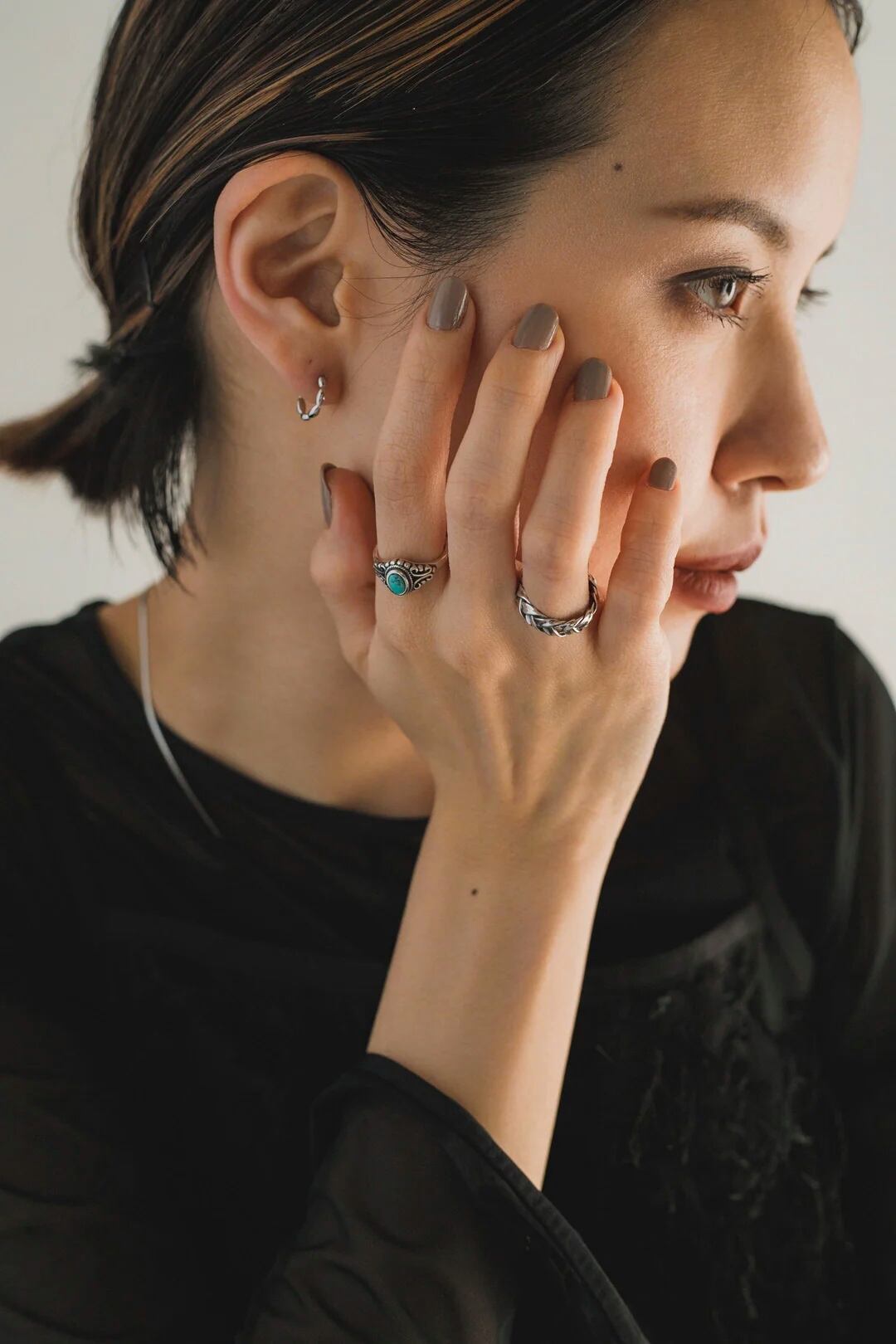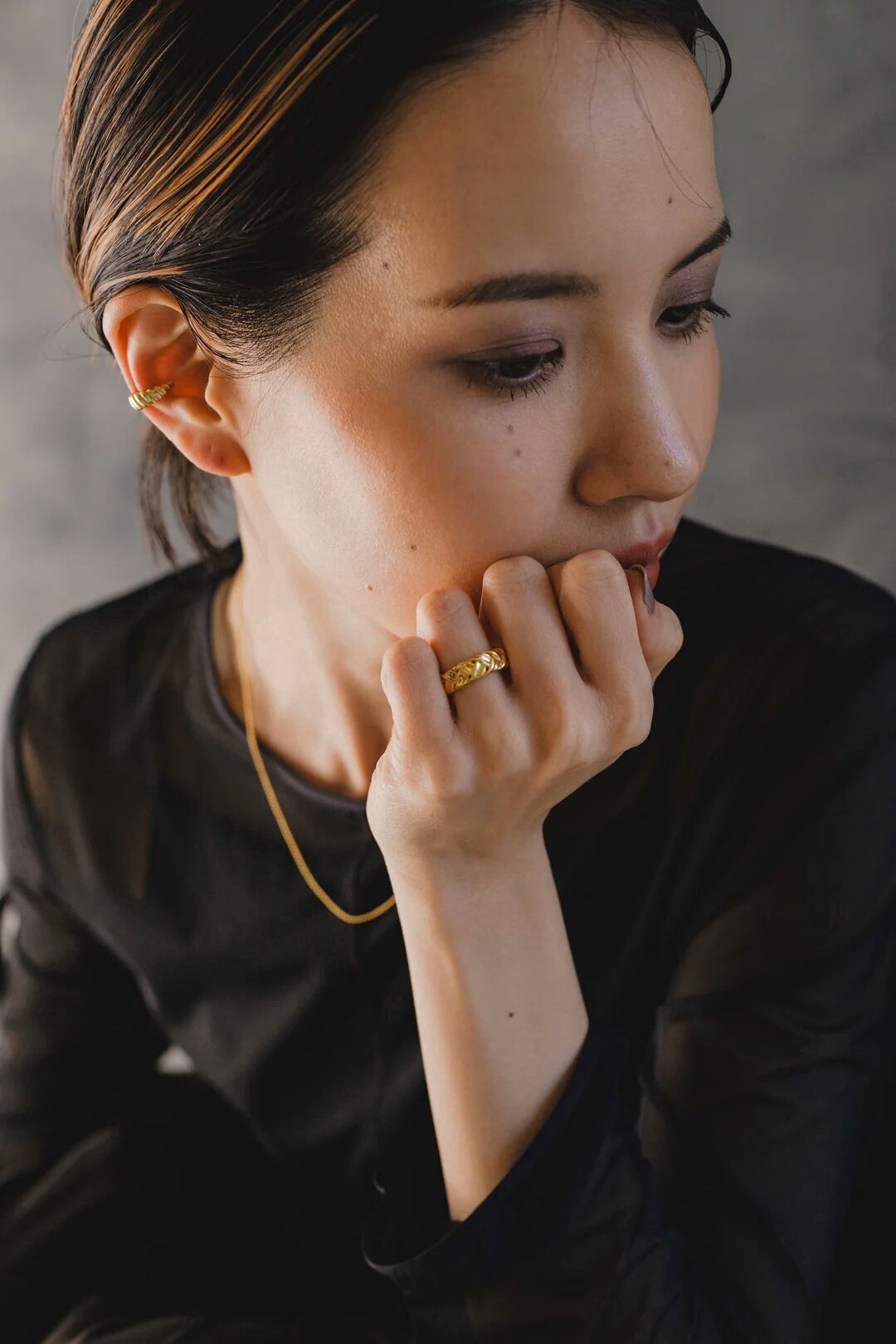 シルバーリング素材:Silver925(ゴールドはSilver925素材に18Kメッキが施されています) シルバーリング内径:16.4mm(約11号) シルバーリングサイズ:オープンサイズ/調節可能 編み込みになったツイストデザインがとてもお洒落なリングです! 手指になじむ立体的なフォルムが手元に存在感を与えてくれ、親指につけても可愛いです◎