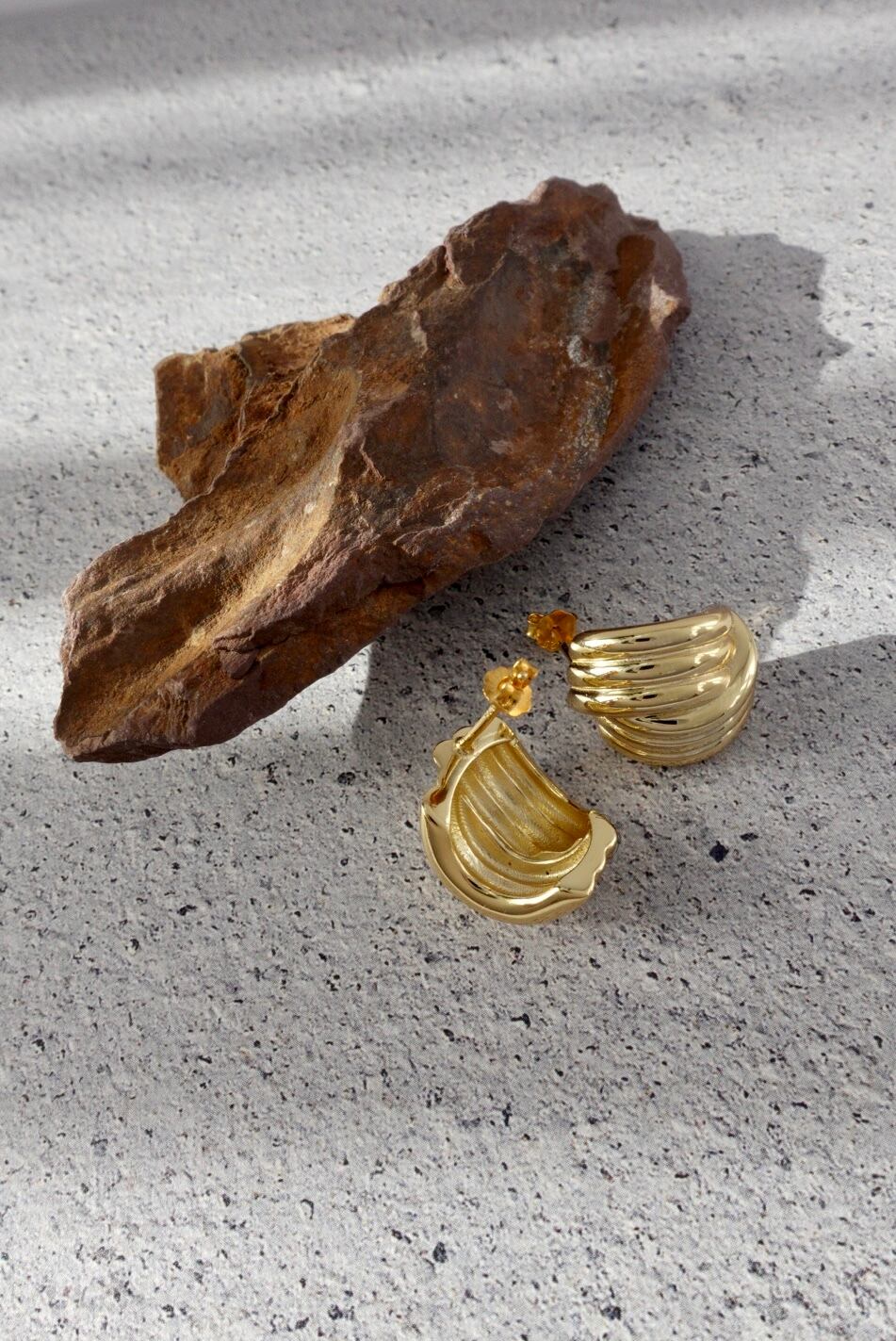 ピアス素材:Silver925(ゴールドはSilver925素材に18Kメッキが施されています) 立体的でしっかりとした作りのレイヤーデザインがとてもお洒落なピアスです! 絶妙なボリューム感がお顔周りをすっきり明るく見せてくれ、大人かわいくお使いいただけます◎