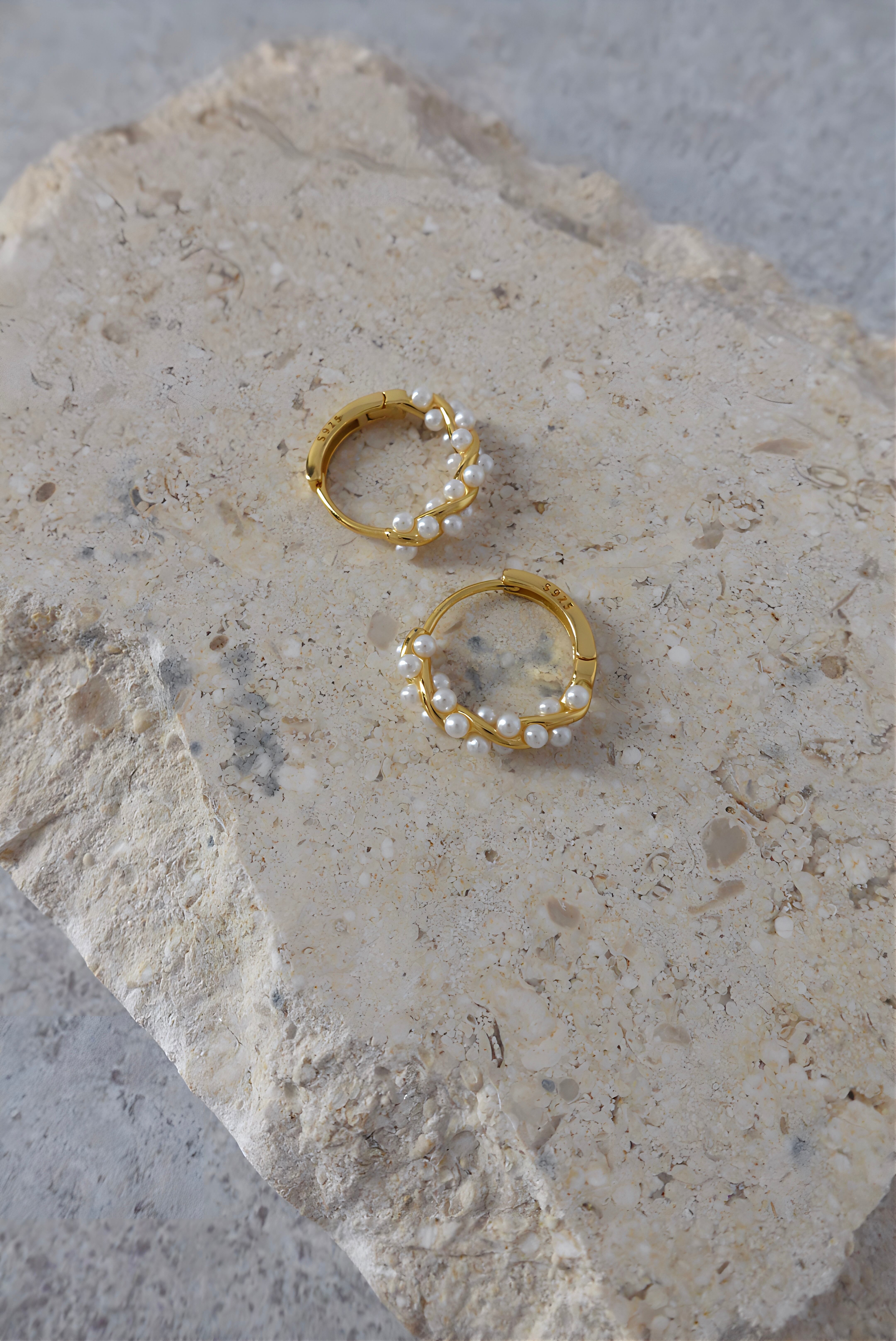 ピアス素材:Silver925(ゴールドはSilver925素材に18Kメッキが施されています) パール素材:貝パール 人気の小ぶりのパールをふんだんにあしらったフープピアスです! 普段使いはもちろんオケージョンなどにもぴったりで、お顔周りを優しげ且つ華やかに演出してくれます◎